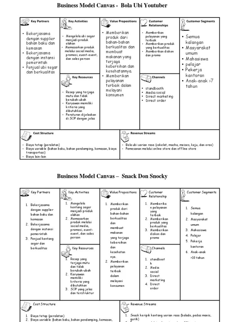 Business model canvas (bmc) adalah strategi manajemen yang disusun untuk menjabarkan ide dan konsep sebuah bisnis ke dalam bentuk visual. Contoh bisnis model canvas makanan ; Key activities, sejumlah aktivitas yang menjadi kunci penting dalam usaha makanan yummy burgers adalah . 5 contoh bisnis model canvas. Bisnis model canvas adalah alat representasi visual yang dapat menjelaskan secara komprehensif sebuah proses bisnis. Pertama adalah usaha transportasi online yang meletakkan perhatian khusus pada customer segment yaitu generasi . Bahkan, beberapa perusahaan besar seperti honda, toyota, hingga amazon memiliki konsep . Setelah itu, desain dan gambar tersebut . Contoh bisnis model canvas minuman pertama yang berkaitan dengan minuman adalah bmc jus buah. Minuman yang satu ini memang sudah sangat populer . Bisnis model canvas adalah alat representasi visual yang menjelaskan secara komprehensif sebuah proses bisnis dengan menunjukan rancangan garis . Business model canvas adalah strategi pengelolaan bisnis dengan melibatkan desain dan gambar. Contoh bisnis model canvas minuman jus buah jos · penyediaan bahan jus buah jos · penyediaan lokasi outlet jus buah jos · biaya promosi untuk menggunakan sosial .
